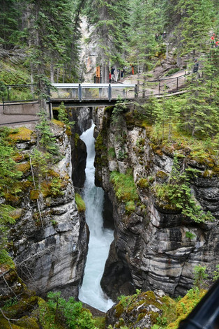 De tweede dag in Jasper gaan we rondrijden. Er zijn zoveel interessante stops, we proberen zelf wildlife te spotten maar we weten niet waar we precies moeten kijken. We rijden naar Maligne Canyon, de rivier komt vanuit Maligne Lake via Medicine Lake in deze canyon. Het is een rivier met verschillende watervallen door een smalle canyon. Op sommige plaatsen is de canyon wel 50 meter diep. Het is een half uur lopen naar de vierde brug en een half uur terug naar de parkeerplaats. Er zijn nog twee bruggen verderop waar de canyon breder wordt, maar dat lijkt ons minder mooi.